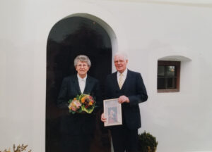 Hilda Köll geb. Prantl, wohnhaft in Ötztal-Bahnhof (Jahrgang 1936) erinnert sich. „Franz und ich haben am 6. August 1956 in der Wiltener Basilika kirchlich geheiratet, die standesamtliche Trauung fand am Standesamt Imst statt. Nach der Trauung sind wir am späten Nachmittag zu meinem Elternhaus in Roppen gefahren, wo meine Schwester Emma und Schwägerin Luise das Hochzeitsmahl vorbereitet hatten. Leider kam es nicht zum Festessen, da im Ortsteil Obbruck ein Feuer ausgebrochen war. Meine Brüder und einige andere Geladene mussten als Feuerwehrleute natürlich in großer Eile zum Einsatzort, so war es mit der Hochzeitsfeier vorbei, noch ehe sie begonnen hatte.“ Die Feier zur Diamantenen Hochzeit fand dann am 6. August2016 ohne Hindernisse im Gasthof Karlsruhe in Roppen statt. Franz Köll, gebürtig in Balbach-Ochsengarten, starb am 6. März 2020.