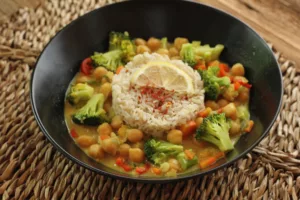 8. Mit Petersilie bestreuen und mit Reis (idealerweise Vollkornreis) servieren.