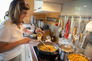„Huaming kocht“ ist dieses Mal bei Andrea Stigger in Ötztal-Bahnhof zu Gast. Die passionierte Hobbyköchin steht für pflanzenbasiertes Kochen und weil ihr Gesundheit, Tierwohl und unser Klima sehr am Herzen liegen, hat sie sogar ein Diplom zur Ernährungstrainerin absolviert. Bemerkenswert ist, dass Andrea seit einiger Zeit Food-Bloggerin ist (www. andrea-kocht-vegan.at), Kochkurse leitet und sogar ein eigenes Kochbuch geschrieben hat, das im Frühjahr 2024 erscheinen wird. Für uns hat Andrea ein einfaches Gericht gekocht, das köstlich schmeckt und zudem sehr vitamin- und proteinreich ist, und so nebenbei wurde auch noch ein toller Hummus-Aufstrich zubereitet.