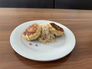 - Die Kaspressknödel zusammen mit dem Sauerkraut anrichten und mit etwas frischem Schnittlauch bestreut servieren.