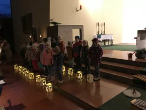 „Lichterkinder auf dieser Erde, leuchten wie Sterne am Himmelszelt. So wie Sankt Martin schenken sie Freude- in alle Herzen auf dieser Welt.“
