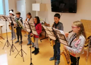 In Zusammenarbeit mit der Musikschule und der Musikkapelle Haiming werden die Kinder an ihrem ausgewählten Blasinstrument unterrichtet.