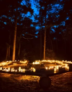 Bald darauf folgte unser traditionelles Laternenfest. Der Wald erstrahlte förmlich von der Botschaft, die uns die Kinder in einem kurzen Theater über den Frieden nähergebracht haben.