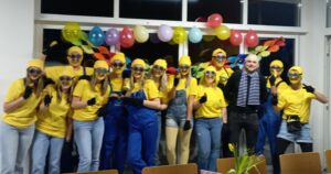 Am 26. Jänner 2024 war am Haimingerberg ein lustiges Spektakel zu beobachten. Eine Schar von Minions mit Gru kamen auf ein Stelldichein, Asterix und die Gallier besuchten unser kleines Dorf und verteilten Zaubertrank, der uns unsagbare Kräfte verlieh, moderne Riesenschuhe tanzten einen flotten Discofox. Die Asfinag Straßenarbeiter sorgten für ein geregeltes Anstehen an der Bar. Die Schauspieler von Haus des Geldes kamen auf ein Bier vorbei und Super Mario versuchte im Vereinssaal einen neuen Rekord aufzustellen! Obwohl es Insekten im Winter eigentlich zu kalt ist, kamen auch Marienkäfer und unzählige Blumen in die warme Stube! Auch die wilden 70er und 80er mit ihren modischen Highlights konnten bewundert werden und Cowboys aus Amerika sowie Tiroler im Huckepack kamen vorbei. Die hübschen Minimäuse servierten und schenkten ein.
