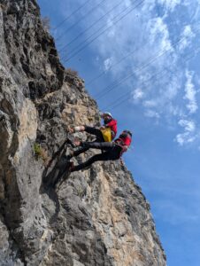 Im Jahr 2024 wurden wir zu fünf Einsätzen alarmiert. Entgegen dem allgemeinen Trend bleiben unsere Einsatzzahlen seit einigen Jahren auf demselben Niveau, was im Grunde eine erfreuliche Bilanz darstellt. Um bei einem Einsatz immer bestens gerüstet zu sein, werden die verschiedenen Einsatzszenarien, Seiltechniken und die medizinische Versorgung von Patienten das ganze Jahr über geübt. Mehr als 45 Übungen und 3000 Übungsstunden stehen zu Buche und zeigen das große Engagement bei den ehrenamtlichen Bergrettern in unserer Ortsstelle.