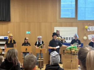Ein Projekt, das uns und ganz besonders unserem Jugendreferenten Bernhard Stigger am Herzen lag, konnten wir dieses Frühjahr durchführen. Oma Schildkröte war zu Besuch in unserem Probelokal. Mit Hilfe einiger engagierter Musikantinnen und Musikanten wurde das Stück „Ferdinand sucht seinen Ton“ einstudiert und dann den Ehrengästen an einem Freitagvormittag vorgeführt. Die Ehrengäste waren die Schülerinnen und Schüler der zweiten Klasse Volksschule Haiming. Sie kamen in Begleitung mit dem Direktor und den Lehrerinnen ins Probelokal und lauschten den Klängen der verschiedenen Instrumente. So war aus der Tuba von Elmar kurzerhand die Tuba von Papa Bär geworden, Mario spielte den Löwen mit seiner Trompete, Christian war der kletternde Affe mit der Klarinette, Simon das Faultier am Saxophon, Bernd imitierte einen Elefanten mit dem Horn, Dominik grunzte wie ein Nilpferd mit der Zugposaune und Jana stellte mit ihrer Querflöte einen Vogel dar. Begleitet wurden wir von Katharina mit der Gitarre. Nicht zu vergessen der Hauptcharakter, Ferdinand der kleine Bär, den übernahm Harald und spielte diesen mit vollem Herzblut wie auch sein Tenorhorn. Jugendreferent Bernhard setzte sich einen Zylinder auf und verwandelte sich in den Erzähler dieser netten Geschichte. Im Anschluss an das Stück konnten die Kinder die einzelnen Instrumente ausprobieren und ihr Lieblingsinstrument finden. Es war sehr erfreulich zu sehen, wie groß das Interesse der Kinder war, und es ist gut möglich, dass wir uns in den nächsten Jahren auf einige neue Gesichter freuen können. Am 29. April fand unser heuriges Frühjahrskonzert statt. Der Oberlandsaal war gefüllt bis auf den letzten Zentimeter. Wir hatten einige herausragende Stücke in unserem Repertoire. Von Melodien wie „Fluch der Karibik“ und „Mont Blanc“ bis hin zu traditioneller Blasmusik war alles vertreten. Das Eröffnungsstück war ein ganz Besonderes, denn dieses schrieb unser Kapellmeister Gabriel Leitner und auch ein weiteres Stück arrangierte er, sodass es für uns optimal zu spielen war. An diesem Abend gab es bestimmt den einen oder anderen Gänsehautmoment, sowohl im Publikum als auch bei uns auf der Bühne. Anna überzeugte wieder mit ihrer Wahnsinnsstimme und dem Aspekt, dass sie sich durch nichts, aber auch wirklich gar nichts aus der Ruhe bringen lässt und alles gibt. Auch Lukas gab mit der E-Gitarre so richtig Gas. Die Guns n‘ Roses wären sicher hellauf begeistert, wenn sie unser Cover ihres Songs „November Rain“ gehört hätten. Auch einige Ehrungen für langjährige Musikantinnen und Musikanten konnten wir wieder verzeichnen. Florentina und Laura dürfen wir zu 15 Jahren aktiver Mitgliedschaft bei der Musikkapelle Haiming gratulieren und Harald und Wolfgang zu 25 Jahren. So viel zum Rückblick unseres bisherigen Jahres. In den nächsten Wochen bekommt unser Konzertmotto dann das bereits erwähnte Augenmerk, denn es heißt wieder Musik in Bewegung. Beim heurigen Bezirksmusikfest in Rietz, Ende Juli, steht die Marschwertung an. Wir stehen schon in den Startlöchern, sind fleißig am Proben und überaus motiviert eine grandiose Leistung abzulegen.