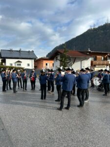 Mit ein paar zusätzlichen Schichten unter der Uniform, um bestens gegen die Kälte gewappnet zu sein, machten wir uns am Silvester- und Neujahrstag auf den Weg. Märsche und Polkas erklangen an diesen beiden Tagen im Dorf und allen, die angetroffen wurden, wurde ein gutes neues Jahr gewünscht. Die Haiminger halfen uns dankenswerterweise auch dabei, den winterlichen Temperaturen zu trotzen, in dem sie das eine oder andere Schnapsl servierten. Manche richteten uns sogar eine kleine Jause.