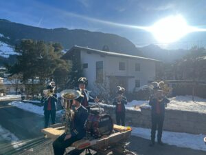 Von beeindruckenden Masken auf dem Maskenball bis hin zu einer intensiven Probenphase für das Frühjahrskonzert – das erste Viertel des Jahres 2025 hatte für uns schon einige Highlights parat. Wie immer starteten wir am Neujahrstag mit musikalischen Klängen ins neue Jahr. Um 12:00 Uhr war der Treffpunkt bei der Bäckerei Rudigier. Nachdem die Neujahrsgrüße verteilt waren, schwärmten wir, aufgeteilt in zwei Gruppen, die ‚große‘ und die ‚kleine‘ Gruppe, aus, um den Haimingerinnen und Haimingern den ersten Tag im neuen Jahr zu versüßen.