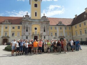 Unsere Herbstreise konnte mit dem Ziel Mostviertel vom 2. bis 6. September durchgeführt werden. Im Hotel Exel in Amstetten waren wir gut aufgehoben: Nach dem Frühstück konnten wir unser tägliches Kulturprogramm durchführen: Besuch des Mostbarons Seppelbauer, Winzer Krems Sandgrube 13, Heurigenbesuch beim Distelberger, Panoramahöhenstraße, Sonntagberg mit Besuch der Basilika und das Stift Seitenstätten sind einige nennenswerte Beispiele. Meist war das Tagesprogramm mit Führungen und Verkostungen verbunden. Die Wachauer Strecke von Melk nach Krems entlang der Donau bei strahlend blauen Himmel war schon ein besonderes Erlebnis.