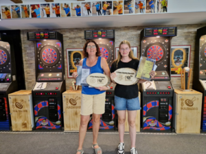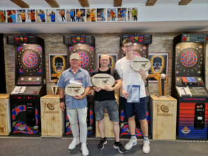 Interessierte sind herzlich dazu eingeladen, einen Monat lang beitragsfrei zur Probe mitzutrainieren und sich vom Dart-Fieber anstecken zu lassen. Vorkenntnisse sind keine nötig – auch meine Bedenken, ein „hoffnungsloser talentloser Fall“ zu sein, kann Rico mir nehmen. „Zuerst schaue ich mir an, wie die Leute spielen, dann können gezielt Tipps gegeben und die Technik verbessert werden. Man kann alles lernen“. Altersmäßig gibt es fast keine Grenzen – Kinder sind ab etwa sechs Jahren soweit, mitzumachen.