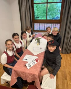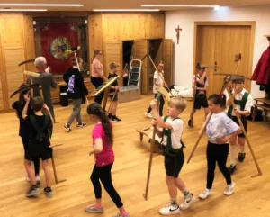 Ende Jänner, Anfang Februar folgten einige Kinder mit deren Eltern der persönlichen Einladung zum Infoabend. Auch die Werbung in den sozialen Medien machte einen guten Wind, und so konnte am 9. Februar vielen Kindern das Vereinswesen erklärt werden. Die Bemühungen haben sich mehr als gelohnt, denn seit Ende Februar wird wöchentlich fleißig mit zehn neuen Kindern im Alter zwischen neun und dreizehn Jahren fleißig geprobt. Immer wieder kamen weitere Interessenten dazu, welche teilweise auf das nächste Jahr vertröstet werden mussten. Anfänglich mit den Grundtanzschritten sowie Plattlerschlägen steigerte man sich Woche für Woche an das Tiroler Abendprogramm heran. Mittlerweile wurden bereits über 20 Proben abgehalten, wo der Spaß nie zu kurz kam. Die Mischung aus Freude und Konsequenz formt die neue Gruppe auf ein auftrittsreifes Niveau.