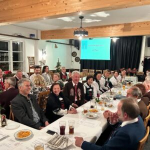 Nach den ausführlichen und informativen Berichten der Funktionäre standen einige Ehrungen auf der Tagesordnung. Obmann Johannes Scherl erhält das Ehrenzeichen in Gold für seine langjährigen Verdienste um das Trachten- und Vereinswesen. Roswitha Leitner erhält die Ehrennadel in Silber für ihre vierzigjährige Trachtentreue und Verbandszugehörigkeit (Nachholung vom letzten Jahr). Es dürfen sich auch drei Mitglieder über das Zehnjährige freuen. Dazu zählen Jasmin Oprießnig, Stefan Berger und Andreas Neuner. Im Anschluss an die Ehrungen kamen die Ehrenmitglieder zu Wort. Nach den allfälligen Wortmeldungen freute man sich über Speis und Trank und ließ den Abend gemütlich ausklingen.